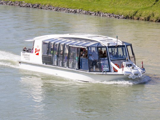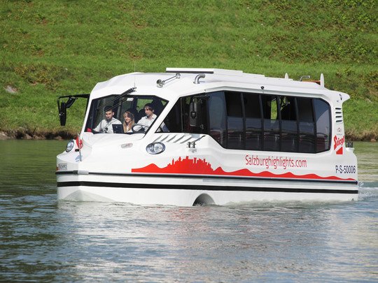 Eine Stadtrundfahrt mit Österreichs einzigen Amphibienbus oder eine Schiffsrundfahrt mit dem Panoramajetboot.