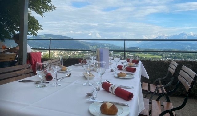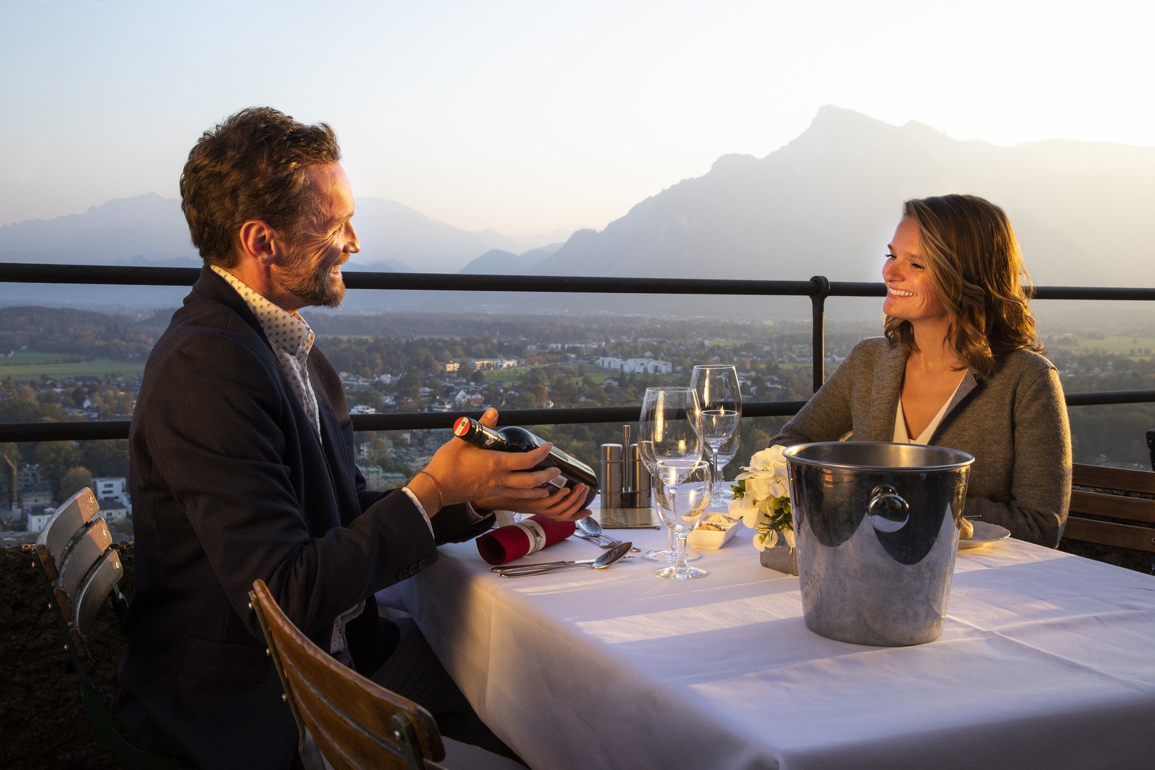 Einzigartiges und unverwechselbares Highlight ist das Mozart Dinner Konzert Salzburg im Panoramarestaurant zur Festung Hohensalzburg. Hoch über den Dächern der Stadt beginnt der Abend mit einem ausgewählten 3-Gang Dinner im Panoramarestaurant. Der atemberaubende Blick auf die Stadt Salzburg und auf die von majestätischen Bergen umgebende Landschaft rund um die Mozartstadt kann schöner nicht sein. Als spezielles Highlight wird den VIP-Dinner/Golden VIP-Dinner & Mozart-Konzert Gästen bei passenden Wetterbedingungen das VIP-Dinner/Golden VIP-Dinner auf der Panoramaterrasse gereicht. Einem romantischen Abend steht somit nichts mehr im Wege.