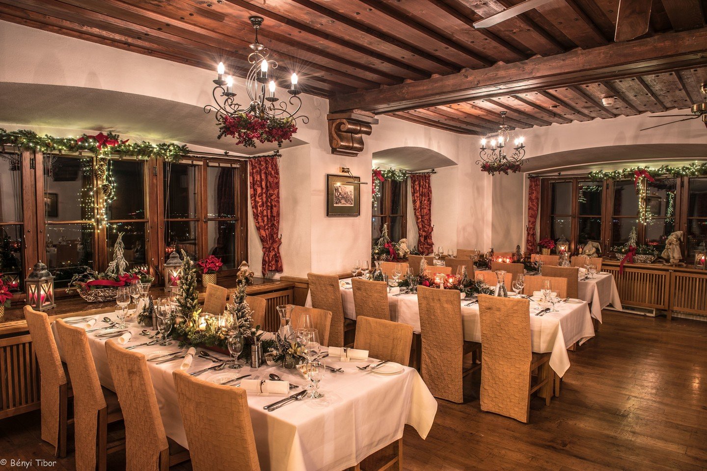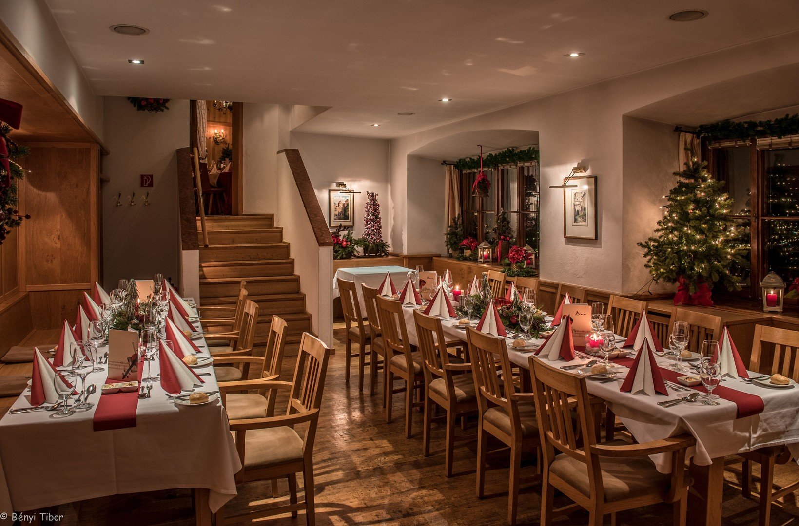 Für Ihre Weihnachtsfeier oder Firmenweihnachtsfeier im Panorama Restaurant stehen Ihnen die vielfältigsten Räume zur Verfügung - von der edlen Zirbenstube mit 14 Personen bis zum historischen Wappensaal mit bis zu 170 Personen.