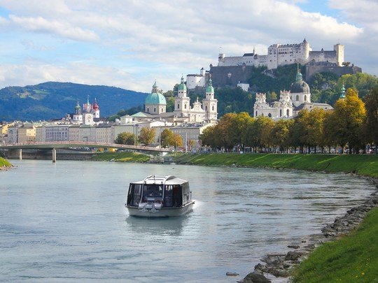 Früher waren es die Salztransporte, die auf dem Salzachfluss unterwegs waren und ihm auch zu diesem Namen verhalfen. Die letzte Schifffahrt wurde 1891 aufgrund zahlreicher Untiefen und zu schwacher Motoren wieder eingestellt. Seit dem Jahr 2002 ist es wieder möglich, den Fluss zu befahren. Die „Amadeus Salzburg“, mit einer Länge von 16,45 m, ist eine spezielle, für die Salzach angefertigte Sonderkonstruktion und weltweit einzigartig. Das hochmoderne Schiff mit bis zu 80 Sitzplätzen (mit Außendeck) hat lediglich 38 cm Tiefgang. Das einzigartige Design mit sehr großen Glasscheiben ermöglicht Ihnen einen hervorragenden Panoramablick. Die 1000 PS in Verbindung mit den modernen Wasserstrahlantrieben ermöglichen eine Geschwindigkeit von bis zu 45 km/h.