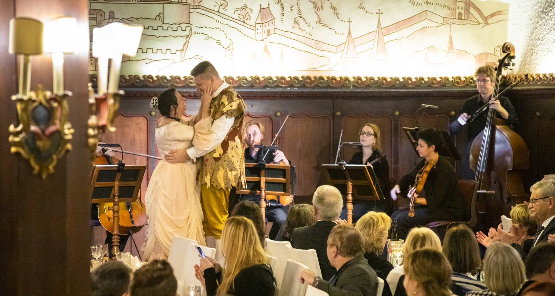 Unique and highly distinctive in Salzburg – the Dinner & Orchestra Concert at the turn of the year. Enjoy a romantic Dinner or VIP Dinner / Golden VIP Dinner in the Panorama Restaurant on the 900 year-old Salzburg fortress with a view of the town and province, followed by the Salzburg Mozart Ensemble Concert in the Castle Hall of the fortress, one of the most magnificent chambers in the fortress. The Salzburg Mozart Ensemble and the singers of the Salzburg Chamber Soloists will enchant you with arias - such as the “Champagne Aria” from Don Giovanni and the “Papageno Duet” from the Magic Flute - or with the “schwipslied” from Johann Strauss.