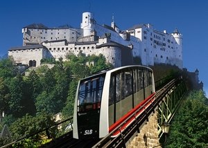 The formation of Salzburg fortress, the world-famous landmark of the city of Mozart, traces back to 1077. The fortress has an installed surface area of 7,000 m³ and is the largest fully preserved castle in Central Europe. The most magnificent chamber is the Golden Hall, in which the world-renowned Salzburg Fortress Concerts take place from January to December. The fortress is a tourist magnet and, with almost one million visitors per year, is one of the most visited attractions in Austria. The fortress, which lies in the heart of the Old Town, is accessible via the Kapitelplatz and the Festungsgasse. From there, a funicular railway brings the visitors to the top of the fortress within less than one minute, surmounting a difference in altitude of 99 metres. Regardless of the operating times of the castle lift, the rail guarantees the comfortable descent into the town for those visiting the Best of Mozart Fortress Concert. It is also possible for visitors to reach the top of Salzburg fortress on foot, though one should calculate about 20 minutes for the footpath.