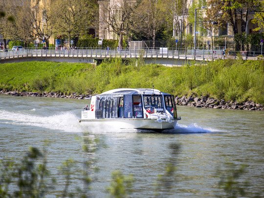 Eine Stadtrundfahrt mit Österreichs einzigen Amphibienbus oder eine Schiffsrundfahrt mit dem Panoramajetboot.